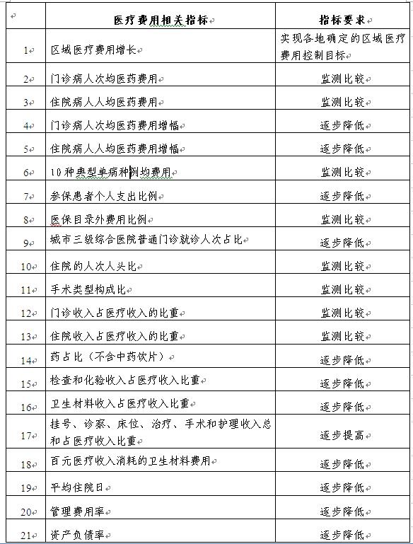 公立醫(yī)院醫(yī)療費(fèi)用控制主要監(jiān)測(cè)指標(biāo)及說(shuō)明