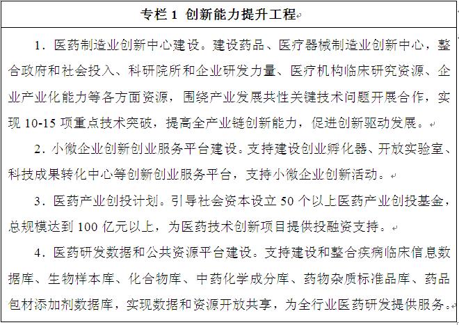 加強(qiáng)研發(fā)支撐。支持建設(shè)臨床前藥效評(píng)價(jià)平臺(tái),規(guī)范藥品醫(yī)療器械臨床試驗(yàn)基地(GCP基地)的建設(shè)和管理,優(yōu)化國(guó)家級(jí)科技創(chuàng)新基地布局,統(tǒng)籌國(guó)家臨床醫(yī)學(xué)研究中心建設(shè),提高臨床研究質(zhì)量,滿足新產(chǎn)品開(kāi)發(fā)和藥品、醫(yī)療器械上市后質(zhì)量評(píng)價(jià)的需要,促進(jìn)科技成果轉(zhuǎn)化應(yīng)用。支持創(chuàng)業(yè)孵化、開(kāi)放實(shí)驗(yàn)室等小企業(yè)服務(wù)平臺(tái)建設(shè),支撐研發(fā)型小企業(yè)發(fā)展。加強(qiáng)醫(yī)藥研發(fā)公共數(shù)據(jù)和資源平臺(tái)建設(shè),提高開(kāi)放共享水平和專業(yè)化服務(wù)能力。發(fā)揮金融創(chuàng)新對(duì)技術(shù)創(chuàng)新的助推作用,引導(dǎo)社會(huì)資本設(shè)立醫(yī)藥領(lǐng)域創(chuàng)業(yè)投資基金、股權(quán)投資基金,支持早期研發(fā)項(xiàng)目實(shí)施和創(chuàng)新型企業(yè)成長(zhǎng)。